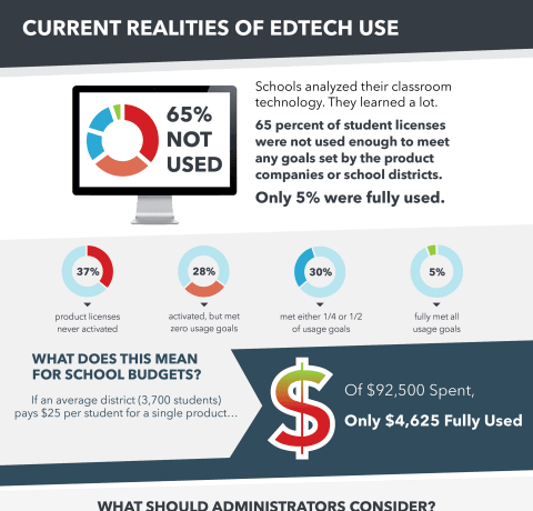 Current Realities of EdTech Use Infographic Ever wonder how much EdTech never gets used? 49 schools analyzed 6 well-known products across 17,000+ students, uncovering startling usage trends with significant impact on spending, implementation and overall student achievement. The findings are not intended to undermine the value of digital learning tools; however, it is suggested that schools and […]