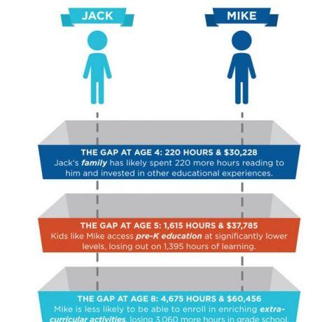 The Learning Gap Infographic presents the difference between learning hours spent of middle class kids and kids born into poverty. Middle class kids have likely spent 6,000 more hours learning than kids born into poverty. Parents - 220 hours Pre-school - 1,395 hours After-school and extra-curriculars - 3,060 hours Summer learning - 1,080 hours Field […]