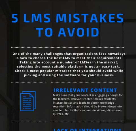 5 LMS Mistakes To Avoid Infographic A Learning Management System (LMS) is designed to solve the problems around training, but not cause new ones..obviously. Nowadays there is a wide variety of eLearning platforms in the market, so it appears to be a quite complicated task to choose a suitable learning management system for your organization. […]