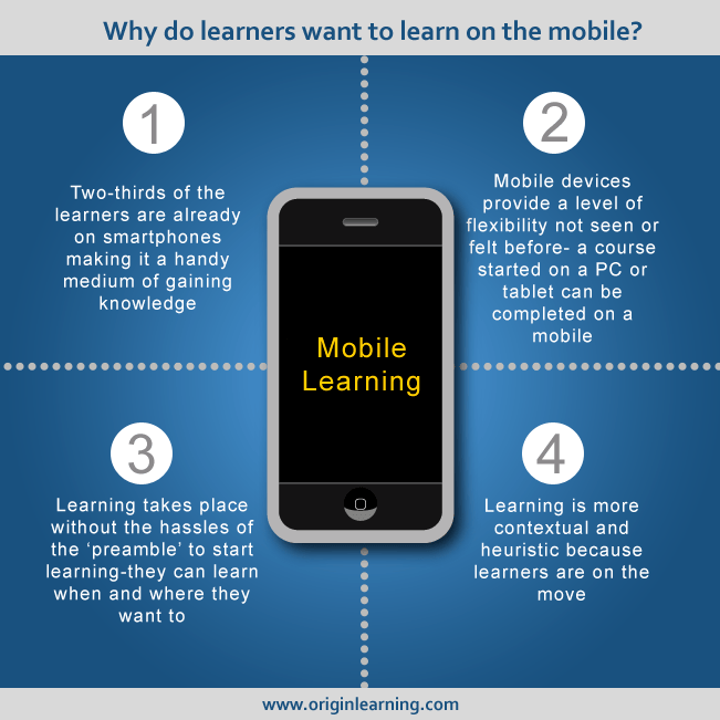 At the Top 4 Reasons Why Learners prefer Mobile Learning Infographic you will find the top four reasons of why learners want to learn on their mobiles: