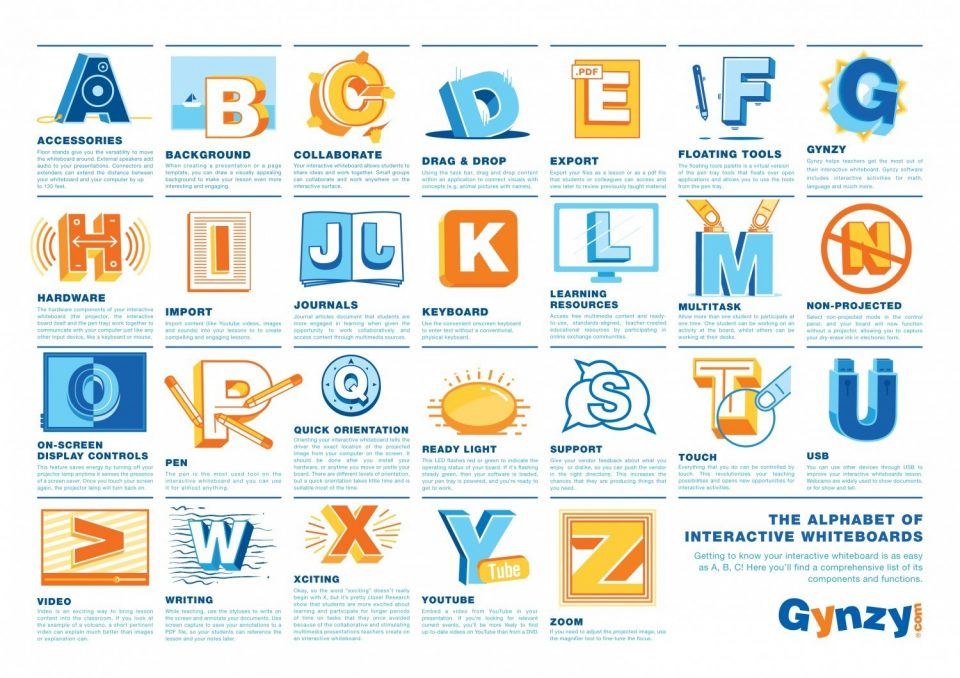 We thought it would be a good idea to create an interactive whiteboard ABC! Click Here and Print it out and hang it in your classroom as a constant reminder of the interactive whiteboard’s many features that will change your lessons forever. ABC’s are omnipresent in classrooms.