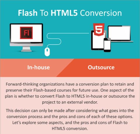 Flash To HTML5 Conversion: In-House Or Outsource? Infographic Do you know that organizations won’t be able to run their Flash courses after 2020? With Flash being phased out completely by 2020, it is high time organizations act on converting their Flash-based online courses to HTML5. Already many organizations are mid-way through their Flash to HTML5 […]
